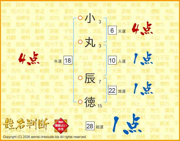 小丸辰徳さんの外運は18画の4点!