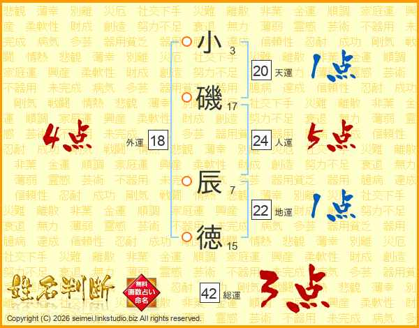 小(3画)磯(17画) 辰(7画)徳(15画)