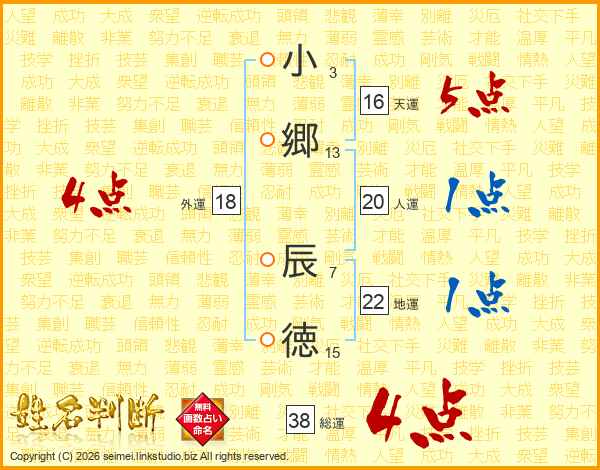 小郷辰徳さんの総運は38画の4点!