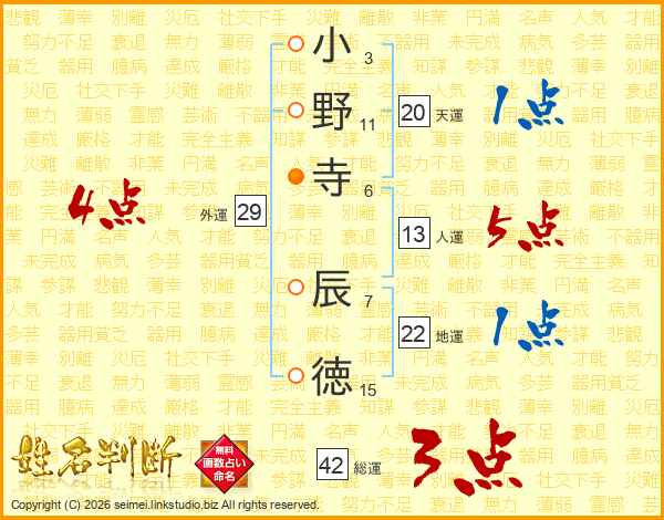 小野寺辰徳さんの総運は42画の3点!