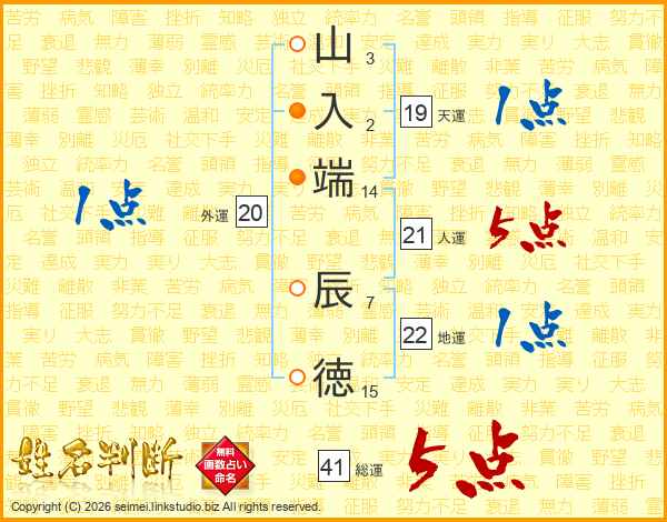 山入端辰徳さんの総運は41画の5点!