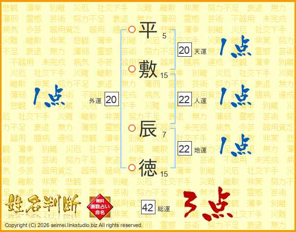 平(5画)敷(15画) 辰(7画)徳(15画)