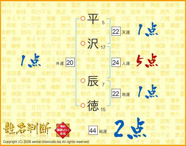 平沢辰徳さんの総運は44画の2点!