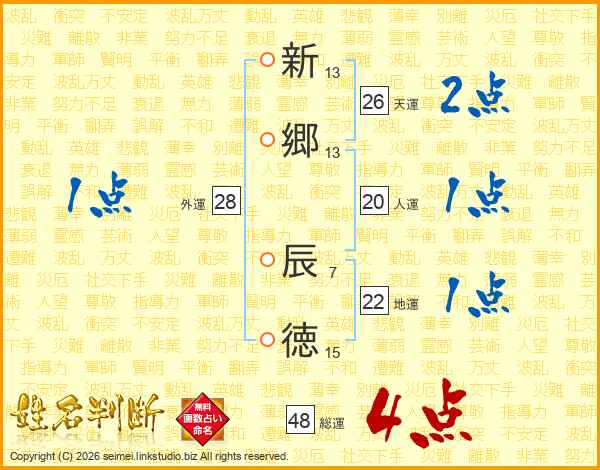 新郷辰徳さんの総運は48画の4点!