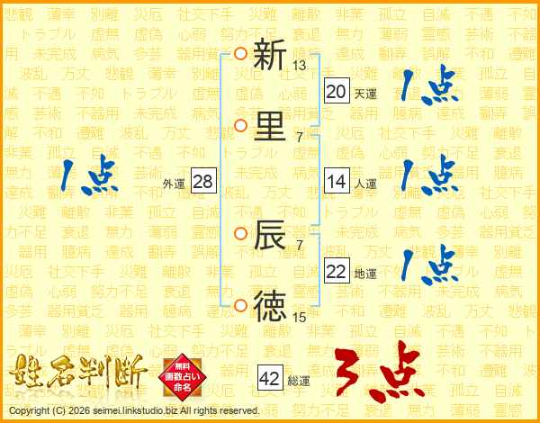 新(13画)里(7画) 辰(7画)徳(15画)