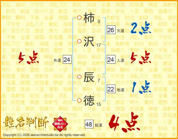 柿沢辰徳さんの総運は48画の4点!