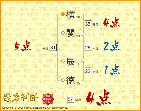 横関辰徳さんの総運は57画の4点!