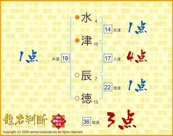 水(4画)津(10画) 辰(7画)徳(15画)