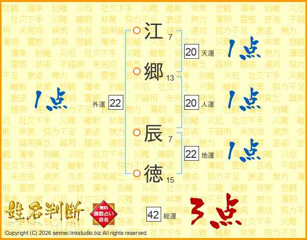 江(7画)郷(13画) 辰(7画)徳(15画)
