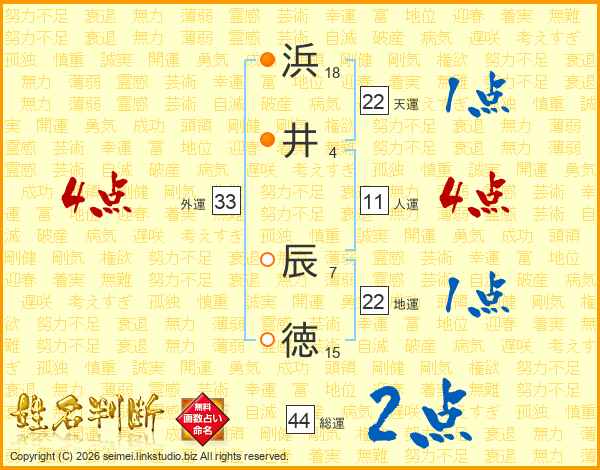 浜井辰徳さんの総運は44画の2点!