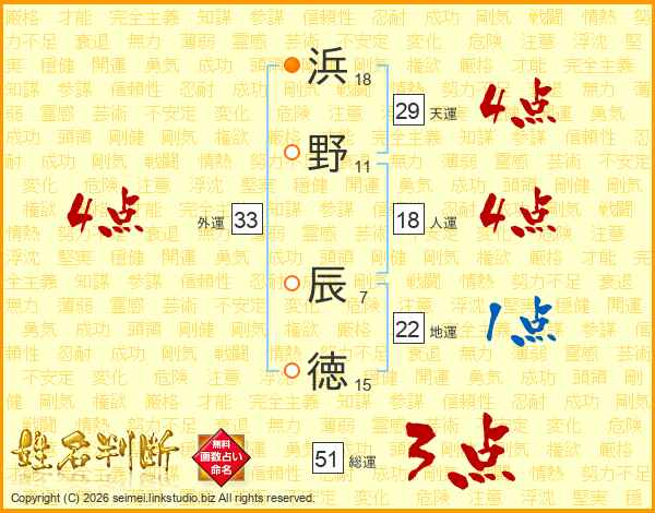 浜野辰徳さんの外運は33画の4点!
