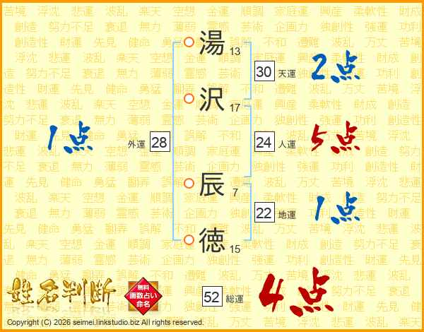 湯沢辰徳さんの総運は52画の4点!