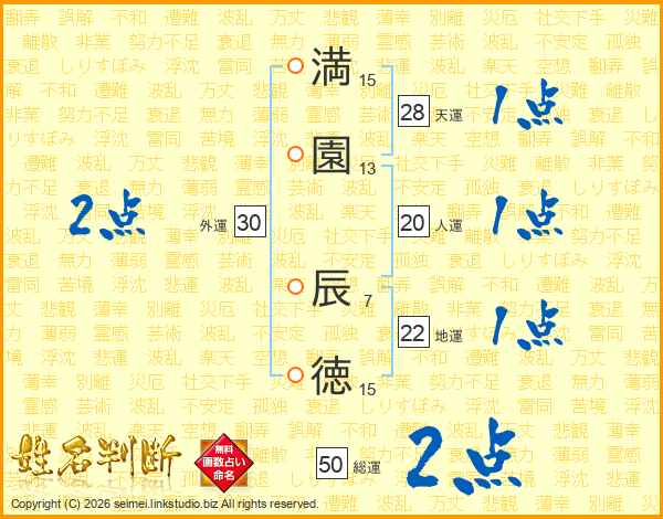 満園辰徳さんの総運は50画の2点!
