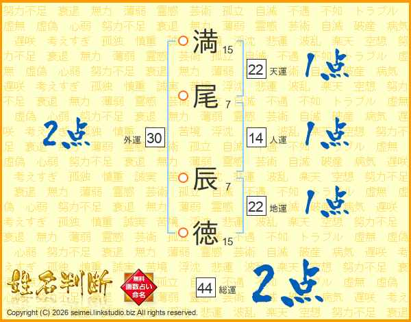 満尾辰徳さんの総運は44画の2点!