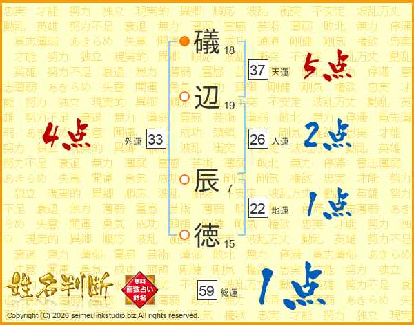 礒辺辰徳さんの天運は37画の5点!