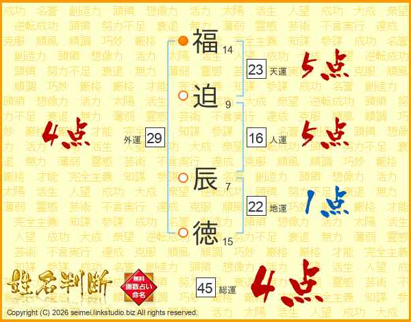 福迫辰徳さんの総運は45画の4点!