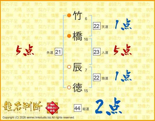 竹橋辰徳さんの総運は44画の2点!