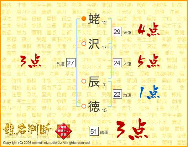 蛯沢辰徳さんの天運は29画の4点!