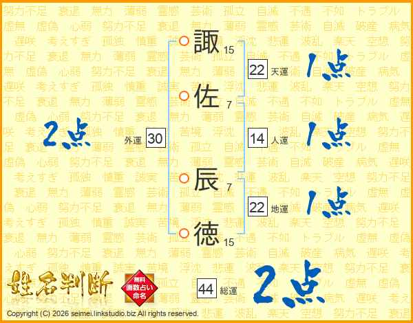 諏佐辰徳さんの総運は44画の2点!