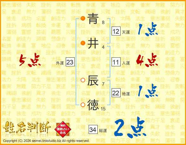 青(8画)井(4画) 辰(7画)徳(15画)