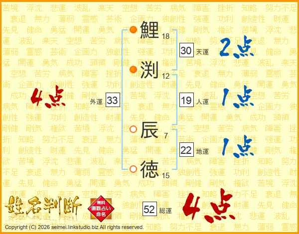 鯉(18画)渕(12画) 辰(7画)徳(15画)