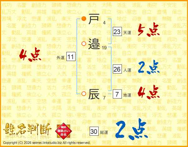 戸邉辰さんの天運は23画の5点!