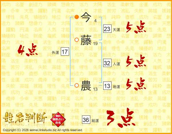 今藤農さんの人運は32画の5点!