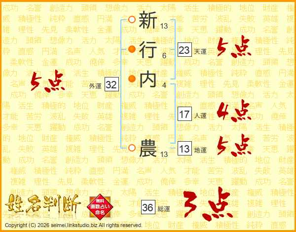 新行内農さんの地運は13画の5点!