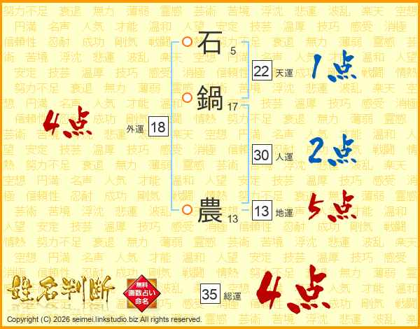 石鍋農さんの総運は35画の4点!