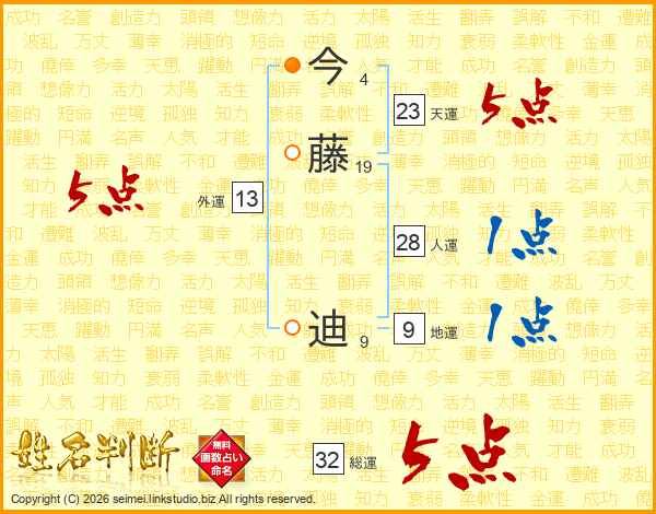 今藤迪さんの総運は32画の5点!