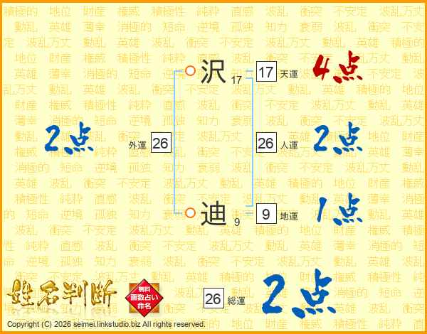 沢迪さんの総運は26画の2点!