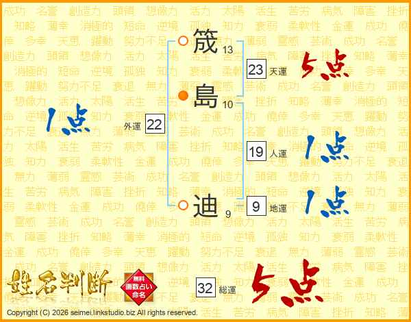 筬島迪さんの天運は23画の5点!