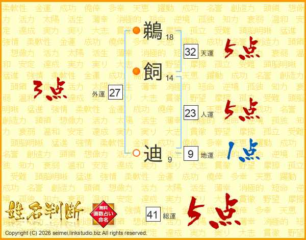 鵜飼迪さんの総運は41画の5点!