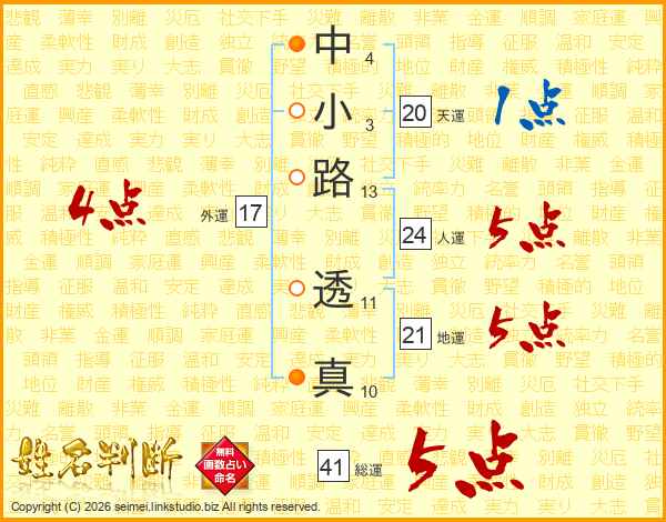 中小路透真さんの人運は24画の5点!