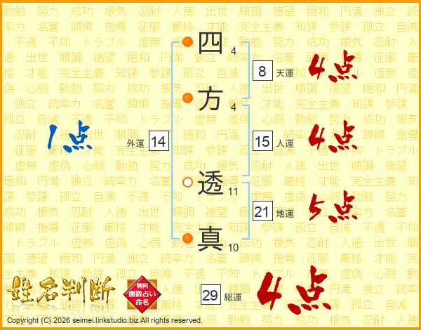 四方透真さんの総運は29画の4点!