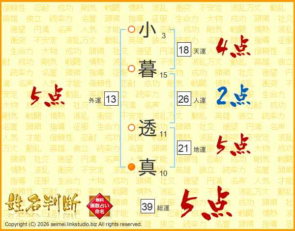 小暮透真さんの総運は39画の5点!
