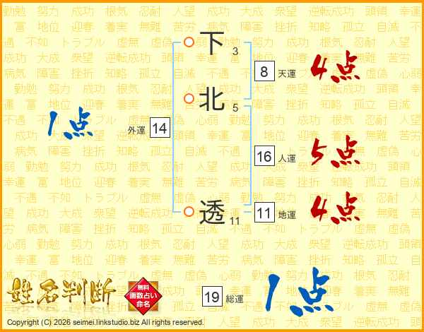 下北透さんの地運は11画の4点!