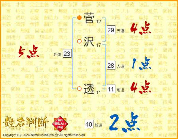 菅沢透さんの地運は11画の4点!