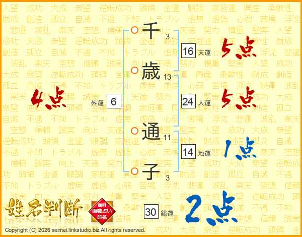 千歳通子さんの総運は30画の2点!