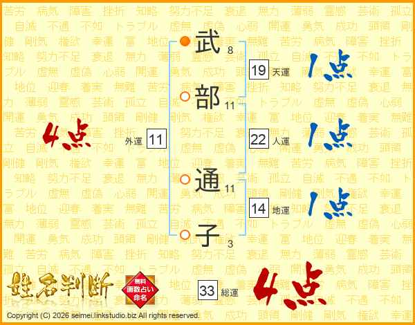武部通子さんの総運は33画の4点!