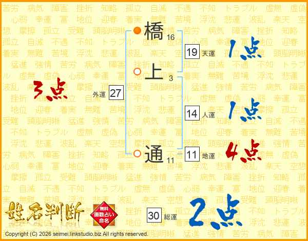 橋上通さんの地運は11画の4点!