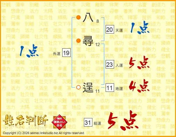 八尋逞さんの総運は31画の5点!