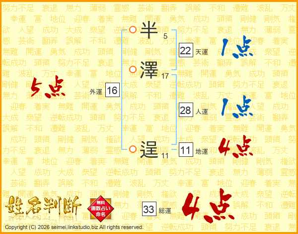 半澤逞さんの総運は33画の4点!