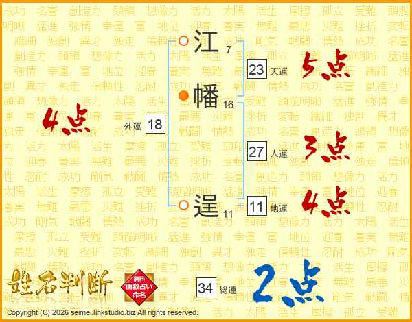 江幡逞さんの総運は34画の2点!