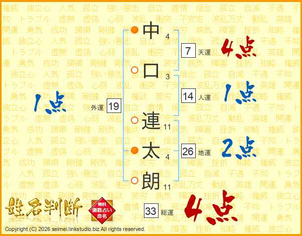 中口連太朗さんの地運は26画の2点!
