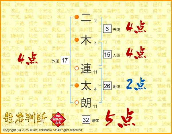 二木連太朗さんの総運は32画の5点!