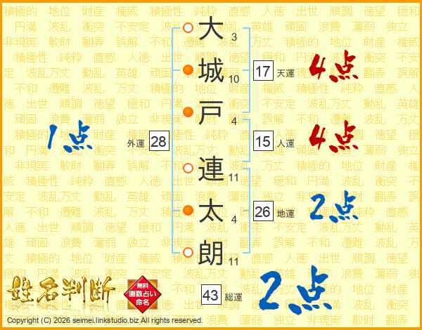大城戸連太朗さんの天運は17画の4点!