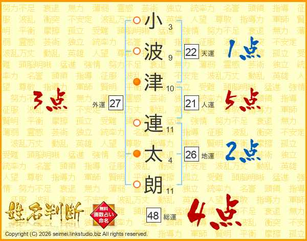小波津連太朗さんの地運は26画の2点!