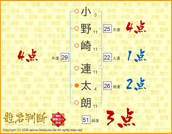 小野崎連太朗さんの天運は25画の4点!