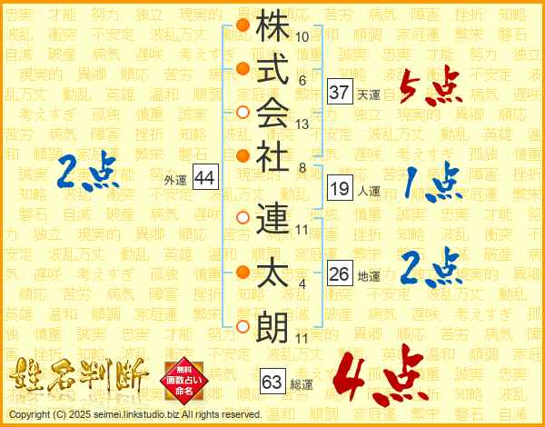 株式会社連太朗さんの総運は63画の4点!